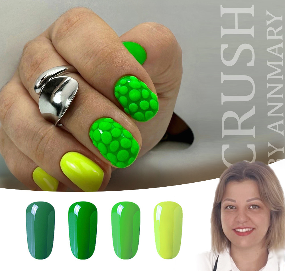 Der Crush Gellack ist gut pigmentiert, dreiphasig und mittelviskos, wodurch er ein perfektes Ergebnis und ein fantastisches Aussehen bietet, selbst in einer Schicht, und er ist sehr widerstandsfähig gegen Abnutzung. Seine Verwendung garantiert die Kombination aus perfektem Ergebnis und erstaunlichem Aussehen.