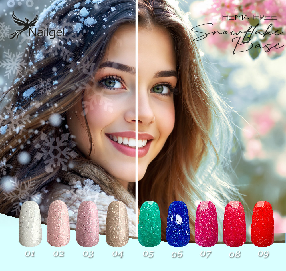 Die Entwickler der Marke Nailgel suchen ständig nach Materialien, die unseren Körper nicht reizen. Daher wurde die Snowflake Compact Base Kollektion entwickelt, die derzeit in 4 Nude-Farbtönen erhältlich ist.