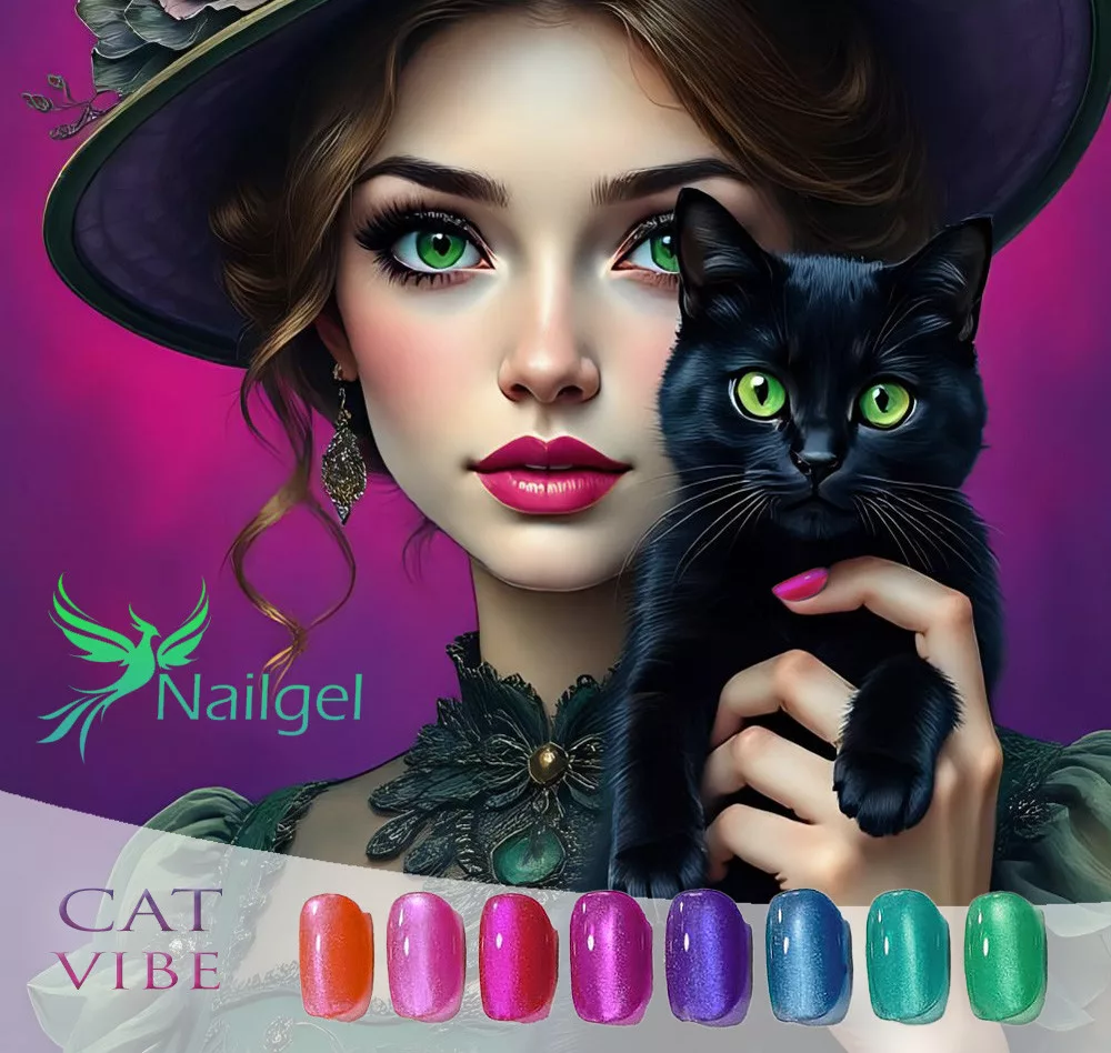 Die Cat Vibe Kollektion wurde speziell zum Lackieren der gesamten Nageloberfläche und für magnetische Designs entwickelt. Die speziellen magnetischen Pigmente werden mit dem Magnet zum Leben erweckt und erzeugen ein beeindruckendes Cat-Eye-Muster. Mit den frischen, lebendigen Frühlingsfarben kreierst du ein einzigartiges Nageldesign.