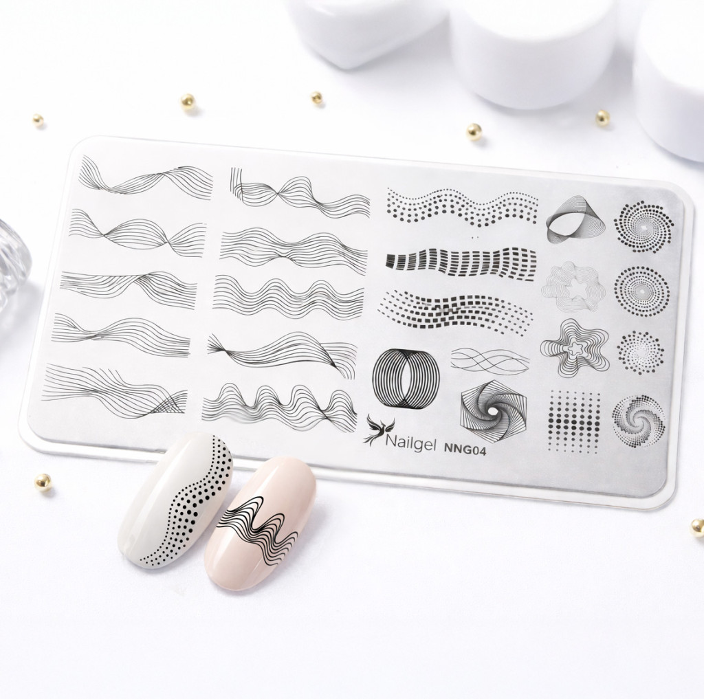Die Nailgel Stamping-Platten sind professionelle Werkzeuge aus hochwertigem Edelstahl, die eine schnelle, präzise und wiederholbare Nageldekoration ermöglichen. Die Motive auf den Platten sind proportional, detailreich und werden mit scharfen Konturen auf den Nagel übertragen, sodass sich moderne, minimalistische oder sogar extravagante Nail Art mühelos erstellen lässt.